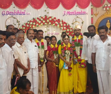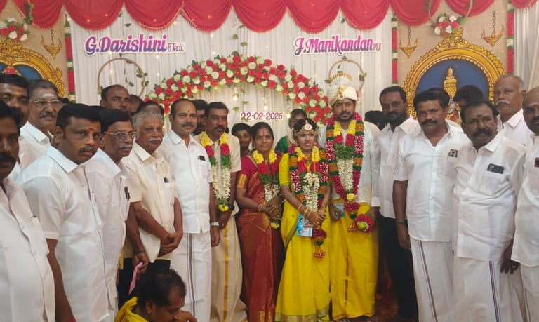 அனைத்திந்திய அண்ணா திராவிட முன்னேற்றக் கழகத்தின் திருச்சி மாவட்டம் திருச்சி புறநகர் பகுதியை சார்ந்த தகவல் தொழில்நுட்ப பிரிவு துணைச் செயலாளரும் திருச்சி திருவெறும்பூர் வின் நகர் பகுதியைச் சார்ந்த கழக நிர்வாகிகளுமான திரு கோபிநாத் கலியமூர்த்தி அவர்களின் புதல்வி தர்ஷினி - மணிகண்டன் அவர்களின் திருமண விழா பெல் நிறுவன குடியிருப்பில் உள்ள ராமானுஜர் கூட மண்டபத்தில் நடைபெற்றது. இந்நிகழ்வில் திருச்சி புறநகர் தெற்கு மாவட்ட அனைத்திந்திய அண்ணா திராவிட முன்னேற்றக் கழகத்தைச் சார்ந்த மாவட்ட கழக செயலாளர், முன்னாள் நாடாளுமன்ற உறுப்பினர் திருமிகு ப.குமார் அவர்கள் பங்கேற்று திருமாங்கல்யத்தை எடுத்துக் கொடுத்து மணமக்களை வாழ்த்தினார். கொண்டாட்டம் இருந்த இந்நிகழ்வில் திருச்சி புறநகர் தெற்கு மாவட்ட கழகத்தைச் சார்ந்த மாவட்டக் கழக நிர்வாகிகள், ஒன்றிய பகுதி பேரூர் கழக நிர்வாகிகள் வட்டக் கழகச் செயலாளர்கள் மற்றும் சார்பு அணிகளை சார்ந்த நிர்வாகிகள் பி ஹெச் எல் அண்ணா தொழிற்சங்கத்தை சார்ந்த நிர்வாகிகள் மற்றும் தொழிலாளர்கள் பத்திரிக்கையாளர் நண்பர்கள் என திரளாக பங்கேற்று சிறப்பு செய்தனர்.